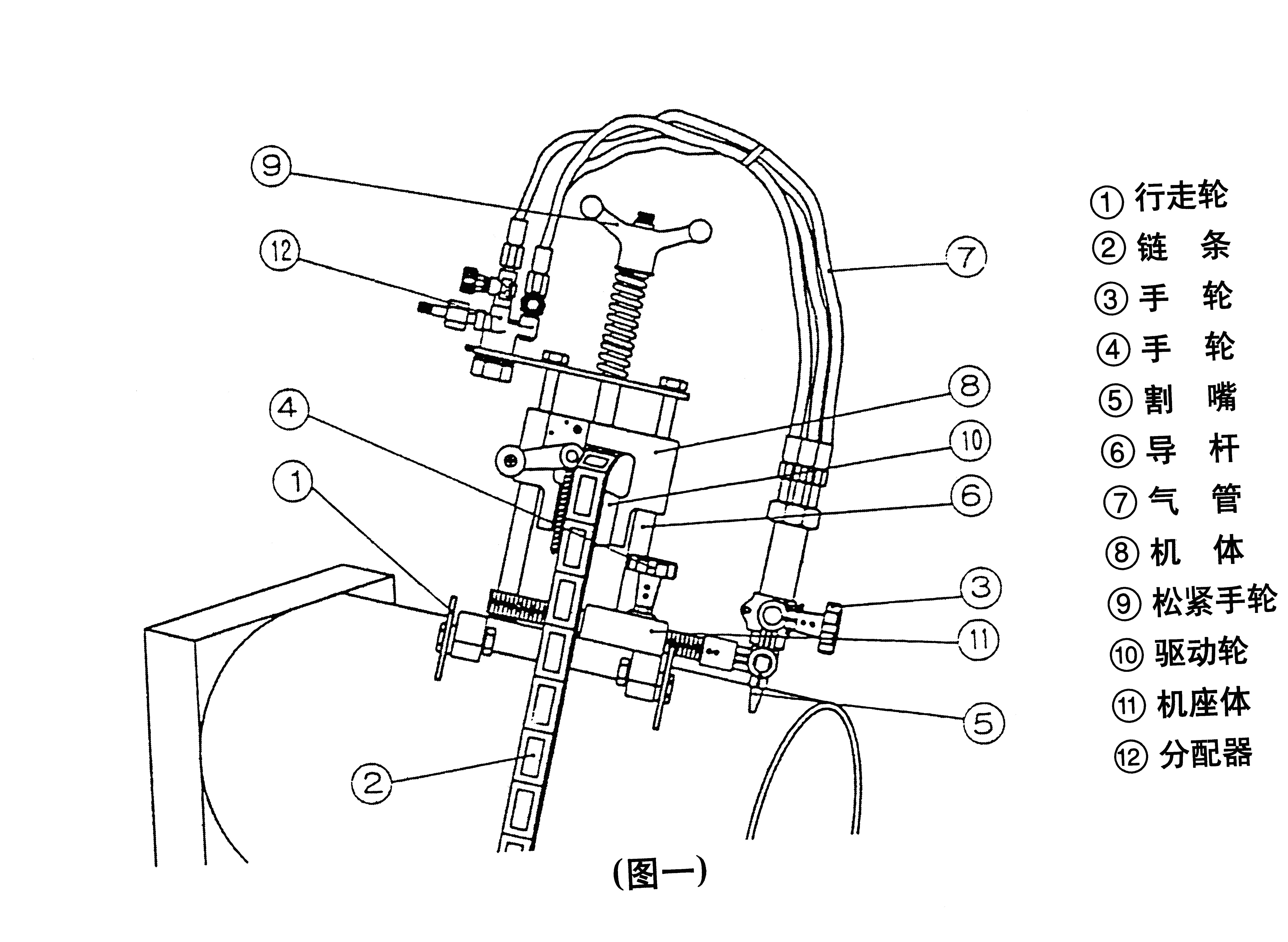 CG2-11G/CG2-11Y手搖管道氣割機(jī)采用蝸輪、蝸桿傳動結(jié)構(gòu),通過增減鏈條使機(jī)器靠在不同直徑上進(jìn)行切割;漲緊在鋼管外壁上手搖驅(qū)動,依托兩組四個輪行走,切割工藝采用氧―乙炔火焰(也可采用氧―丙烷火焰),其特點(diǎn)為機(jī)體外形采用鋁合金鑄造而成,具有重量輕、外形美觀的優(yōu)點(diǎn),是無需電力,特別適用于野外及無電源的場地作業(yè),是管道鋪設(shè)中不可缺少的設(shè)備之一.