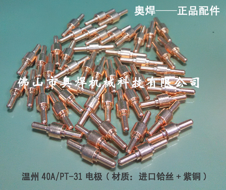 溫州40/PT-31電極采用優(yōu)質(zhì)紫銅和精細加工工藝,使用壽命比普通電極,噴嘴耐用3倍以上!適用所有逆變等離子切割機LGK-40/CUT-40(深圳瑞凌、深圳佳士、深圳華意隆、深圳焊王、上海通用、上海東升、廣州烽火等。)