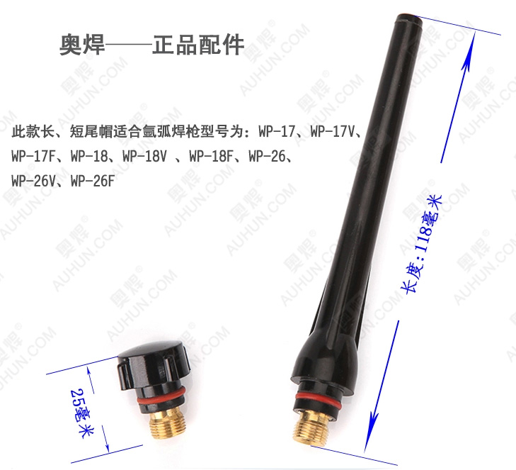WP-17/18/26長(zhǎng)短尾帽、槍尾此款長(zhǎng)、短尾帽/槍尾適合氬弧焊槍型號(hào)為:WP-17、WP-17V、WP-17F、WP-18、WP-18V 、WP-18F、WP-26、WP-26V、WP-26F。