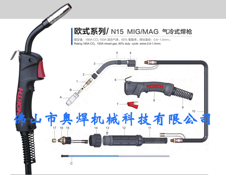 濟南諾斯原裝QTB-160A/N15小手柄推絲焊槍,歐式接口氣冷式推絲二氧化碳焊槍同型號15AK 3米、4米、5米氣保焊槍。公司通過ISO9001:2000國際標準質量體系認證,產品通過國家強制CCC認證和歐盟CE認證。